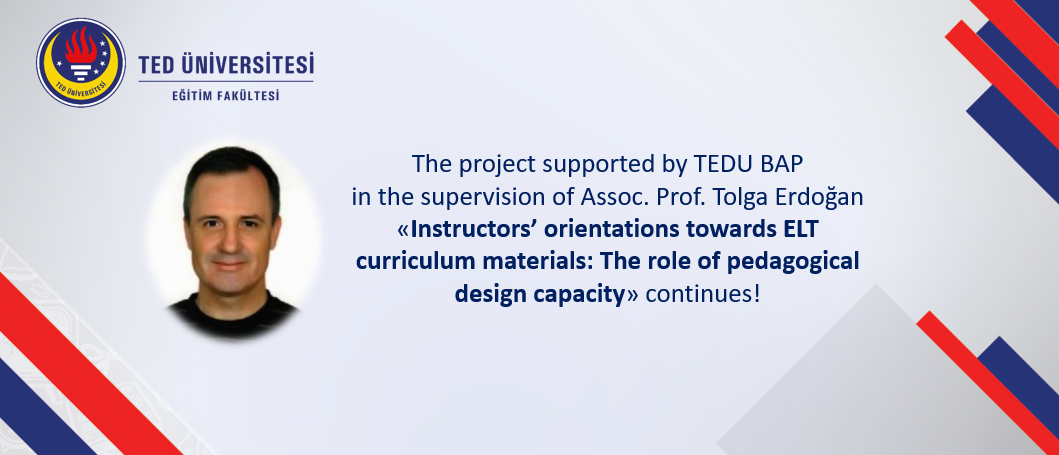 TEDU BAP Project, which is supported by 23.07.2020, in the supervision of Assoc.Prof. Tolga Erdoğan entitled "Instructors’ orientations towards ELT curriculum materials: The role of pedagogical design capacity" projects continues. In the project also Assoc. Prof. Tülin Haşlaman, and ELS Instructors Sercan Çelik ve Lütfiye Seda Aydan are also working as researchers.