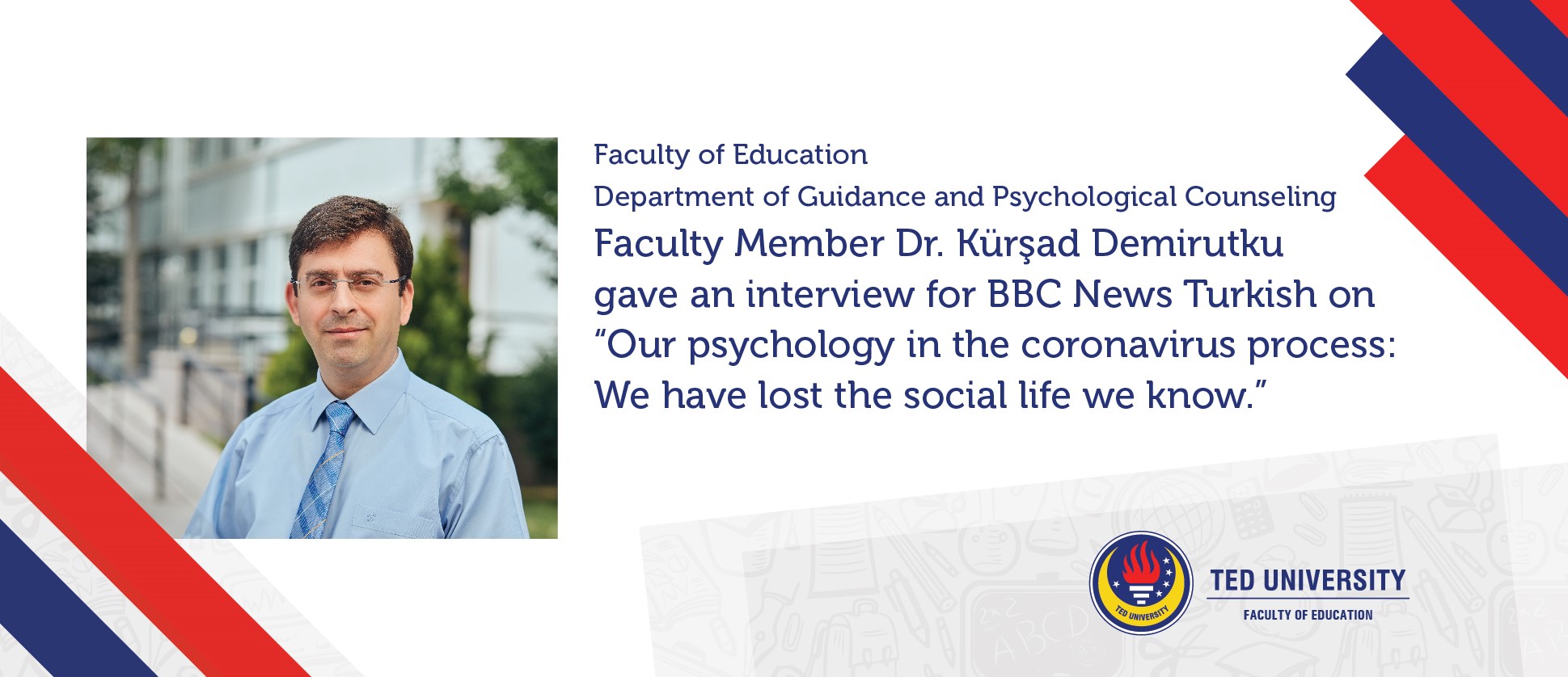 Dr. Kürşad Demirutku gave an interview for +90 Youtube Channel which has been broadcasting for BBC News Turkish on 'Our psychology in the coronavirus process: We have lost the social life we know’ on 02.04.2020.