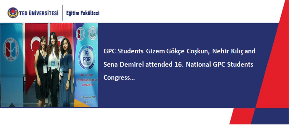 GPC Students Gizem Gökçe Coşkun, Nehir Kılıç and Sena Demirel attended 16. National GPC Students Congress and presented their scale entitled Perception of Psychological Counselor Candidates on working with Sexual Abusers (CISTO). We congratulate them and wish them to have successful lives!