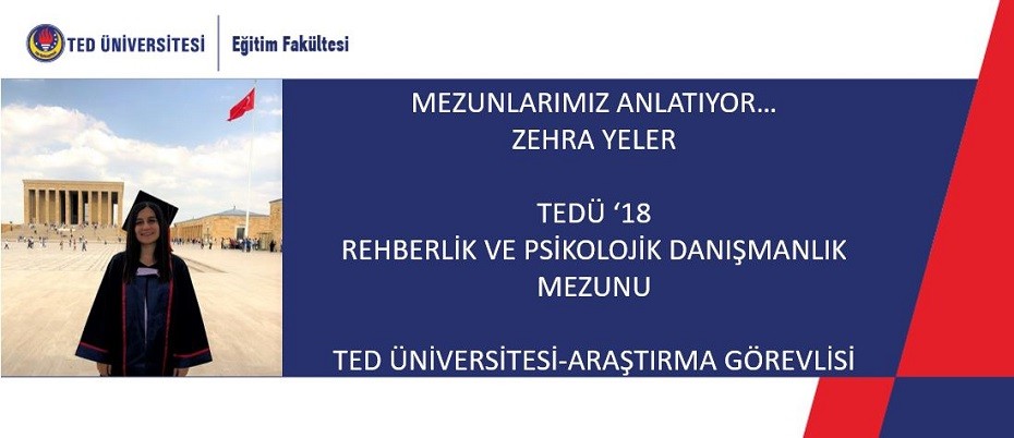 2018 yılında TED Üniversitesi Rehberlik ve Psikolojik Danışmanlık bölümünden mezun oldum. Şu anda Gazi Üniversitesinde aynı bölümde yüksek lisansımı yapıyorum ve Şubat 2019’dan beri TED Üniversitesi’nde araştırma görevlisi olarak çalışıyorum.