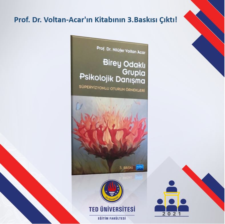 Bölüm Başkanımız Prof. Dr. Nilüfer Voltan-Acar'ın "Birey Odaklı Grupla Psikolojik Danışma" kitabının 3. baskısı, Kasım 2021 itibariyle raflarda yerini aldı. Birey merkezli grup oturumlarına örnek olarak yazılan ilk kaynak niteliğinde olan kitabın basımını Nobel Yayınevi üstlendi.